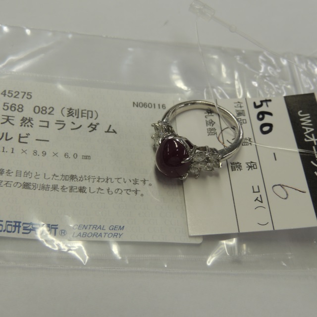 リング ルビー ダイヤ Pt900 7.80g 中ソ 石目:5.68 0.82