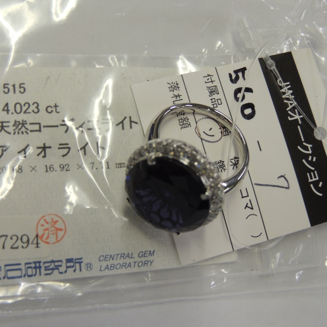 リング アイオライト ダイヤ Pt900 16.20g 中ソ 石目:14.023 0.88