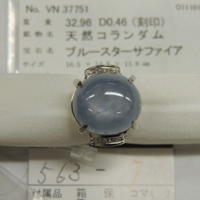 リング スターサファイア ダイヤ Pt900 18.80g 中ソ 石目:SS32.96 FD0.46