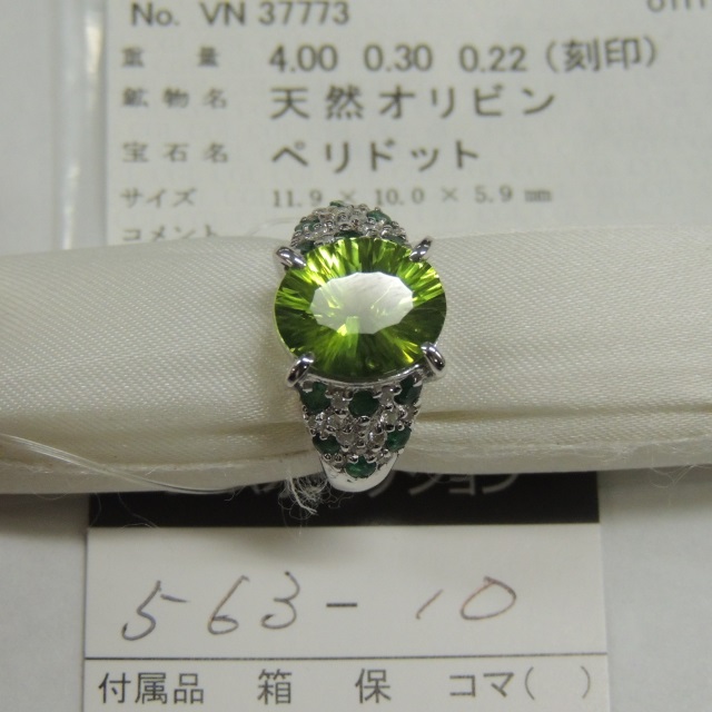 リング ペリドット エメラルド ダイヤ K18WG 7.30g 中ソ 石目:PE4.00 E0.30 FD0.22