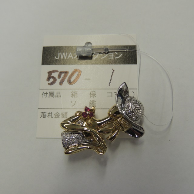 ペン・ブローチ ルビー ダイヤ K18/Pt 11.90g 石目:0.15 0.22