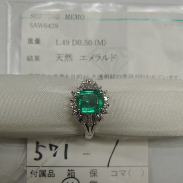 リング エメラルド ダイヤ Pt900 8.70g ソ 石目:E1.49CT D0.5CT