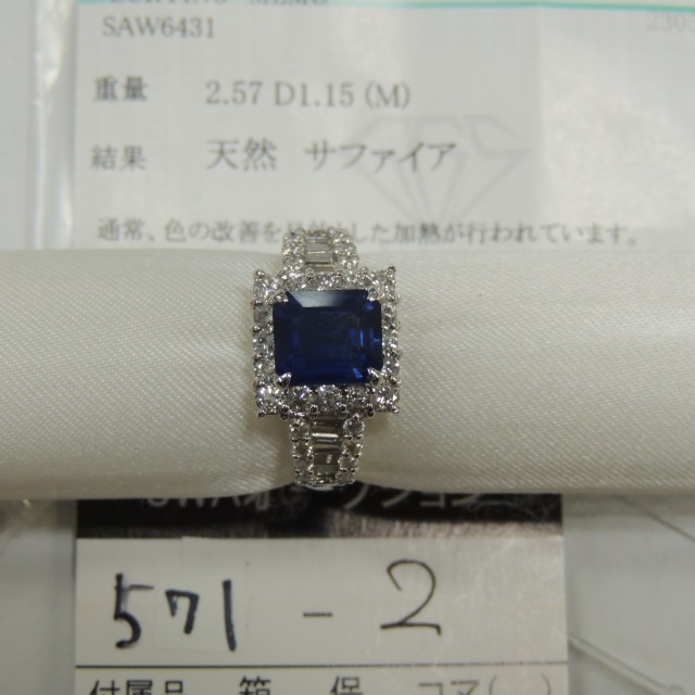 リング サファイア ダイヤ Pt900 8.30g ソ 石目:S2.57CT D1.15CT