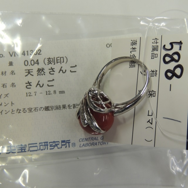 リング 珊瑚 12.8mm Pt900 11.54g 中ソ 石目:D0.04
