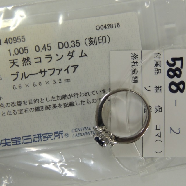 リング サファイア ダイヤ Pt900 7.00g 中ソ 石目:S1.005 D0.45 0.35