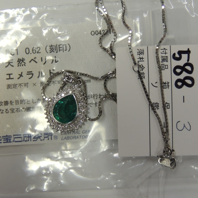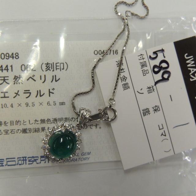 ペン・ネック エメラルド ダイヤ Pt850/900 9.18g 中ソ 石目:E1.81 D0.62