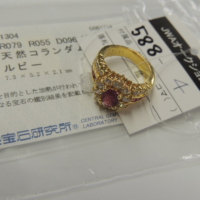 リング ルビー ダイヤ K18 8.75g 中ソ 石目:R0.79 0.55 D0.96