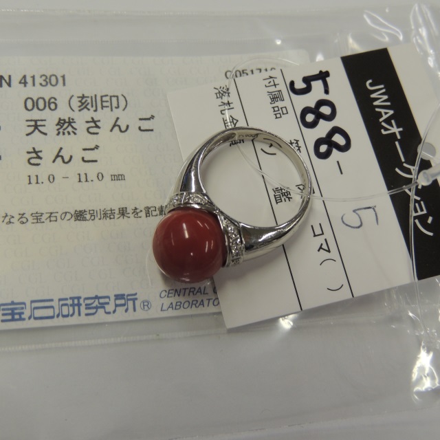リング 珊瑚 11mm Pt900 7.35g 中ソ 石目:D0.06