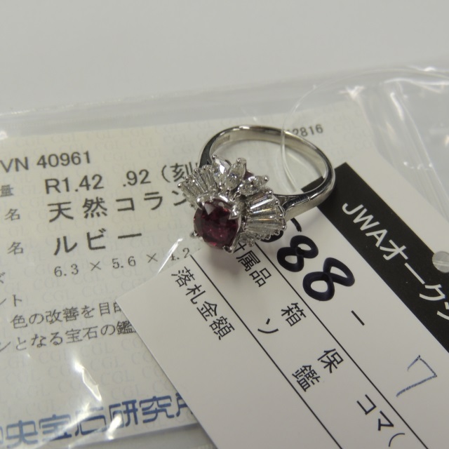 リング ルビー ダイヤ Pt900 6.50g 中ソ 石目:R1.42 D0.92