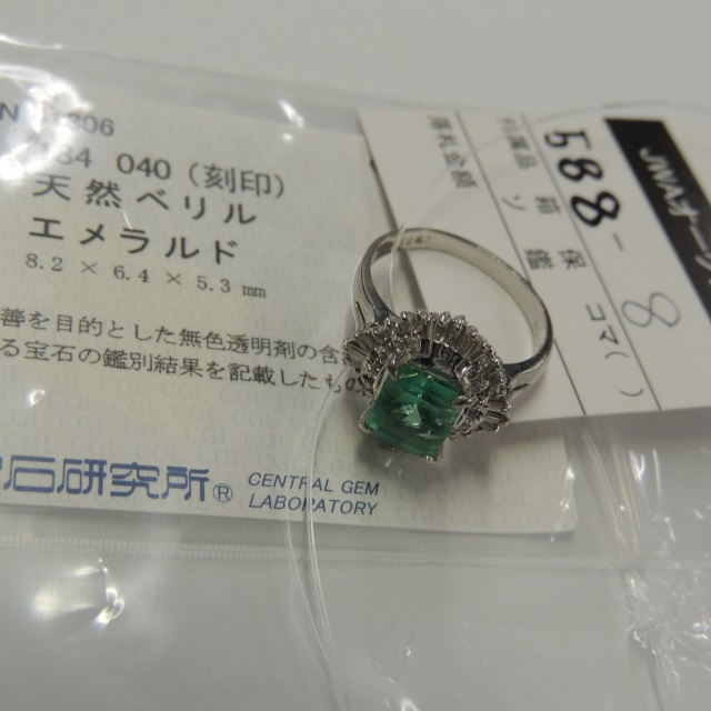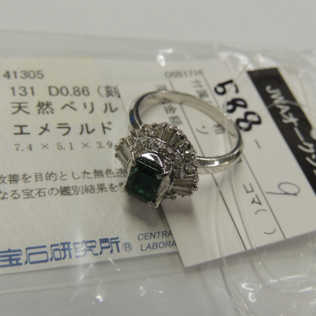 リング エメラルド ダイヤ Pt900 10.69g 中ソ 石目:E1.31 D0.86