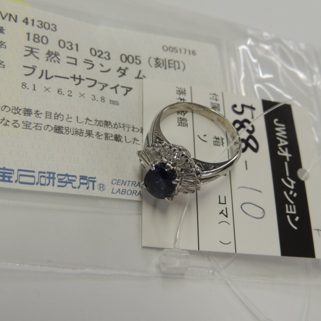 リング サファイア ダイヤ Pt900 7.82g 中ソ 石目:S1.80 D0.31 0.23 0.05