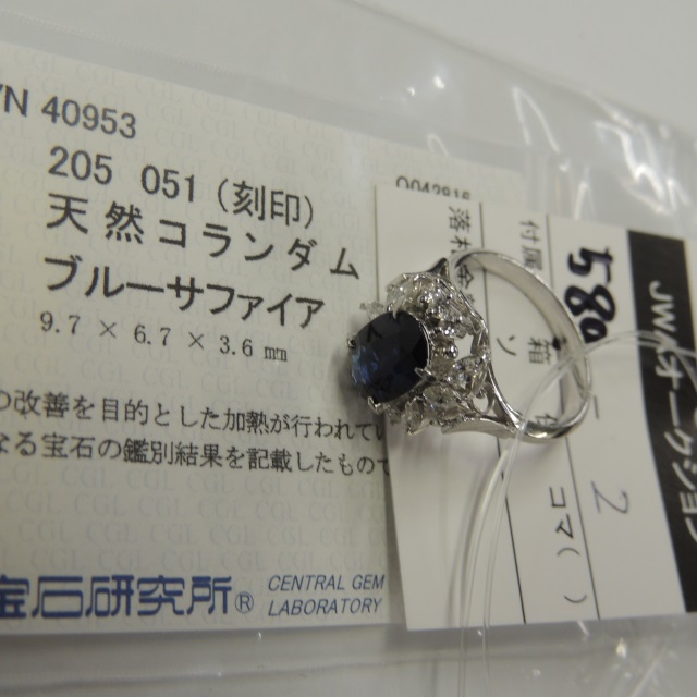 リング サファイア ダイヤ Pt900 5.80g 中ソ 石目:S2.05 D0.51