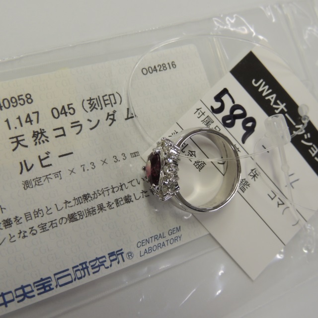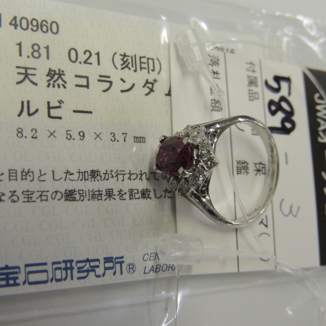 リング ルビー ダイヤ Pt900 5.40g 中ソ 石目:R1.81 D0.21