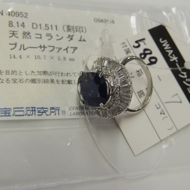 リング サファイア ダイヤ Pt900 15.41g 中ソ 石目:S8.14 D1.511
