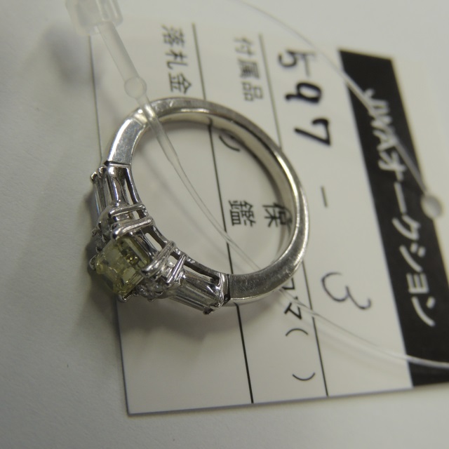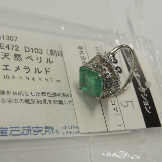リング エメラルド ダイヤ 一石メレ落ち Pt900 7.86g 中ソ 鑑 石目:E4.72 D1.03
