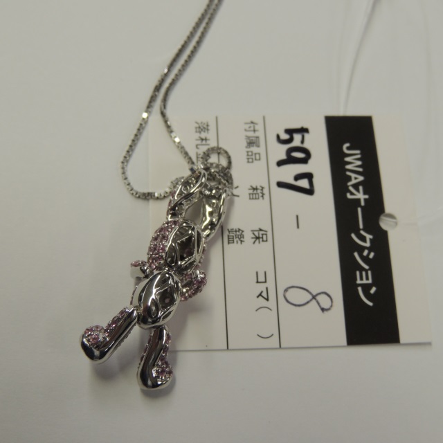 ペン・ネック サファイヤ ダイヤ うさぎ K18WG 9.20g 石目:1.24 0.72