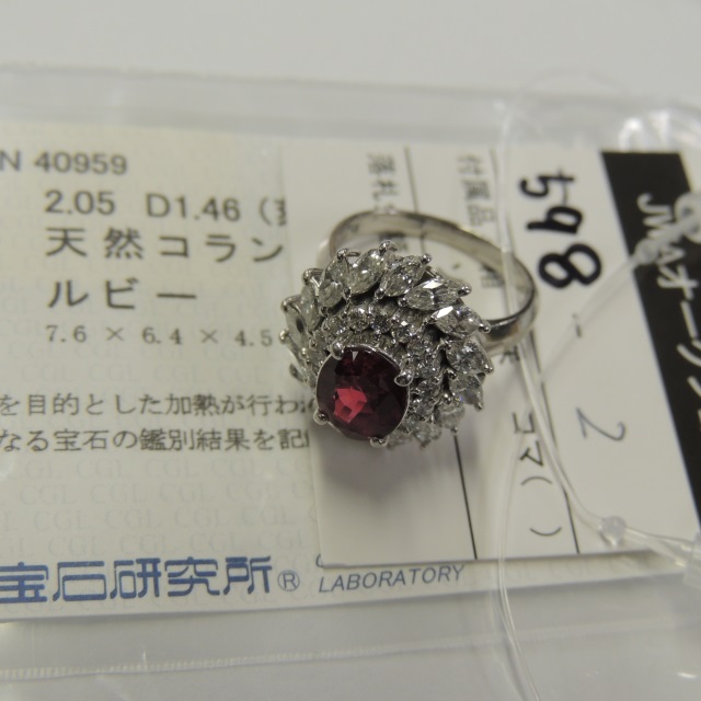 リング ルビー ダイヤ Pt900 8.40g 中ソ 石目:R2.05 D1.46