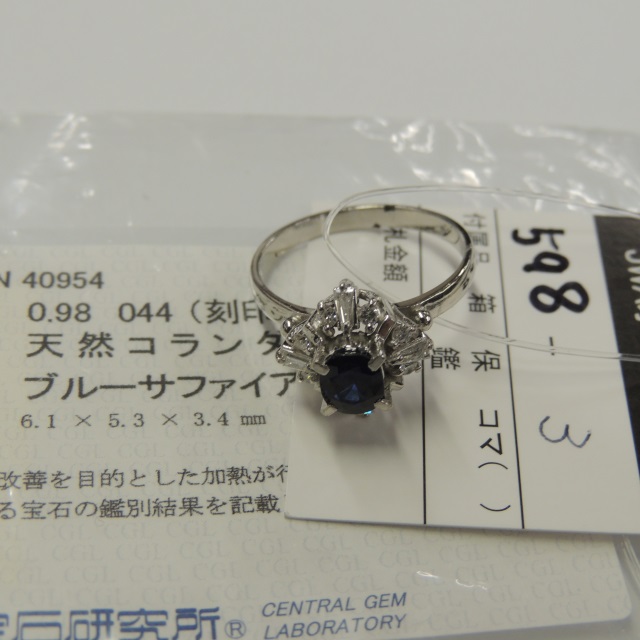 リング サファイア ダイヤ Pt900 6.30g 中ソ 石目:S0.98 D0.44