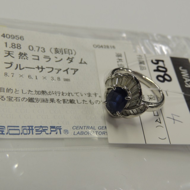 リング サファイア ダイヤ Pt900 7.70g 中ソ 石目:S1.88 D0.73