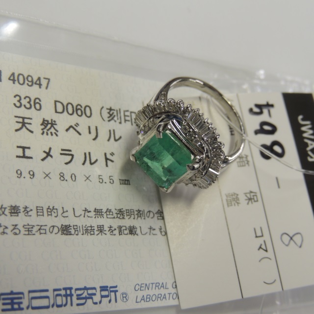 リング エメラルド ダイヤ Pt900 8.10g 中ソ 石目:E3.36 D0.60