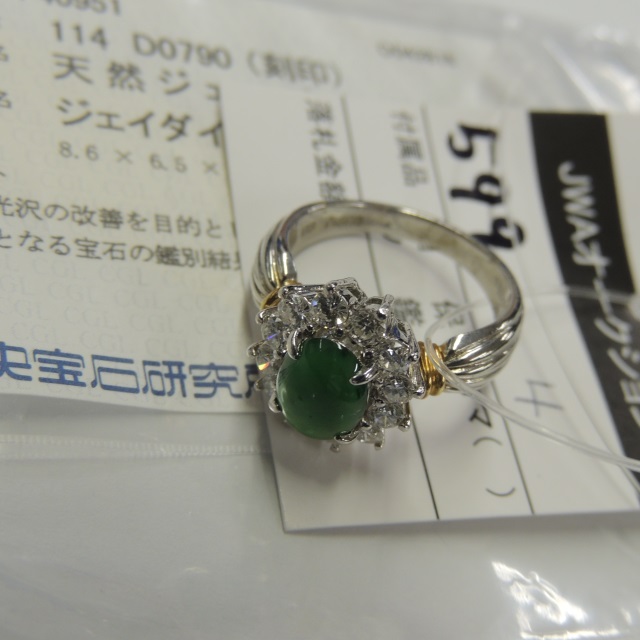 リング ヒスイ ダイヤ K18/Pt900 8.00g 中ソ 石目:J1.14 D0.79