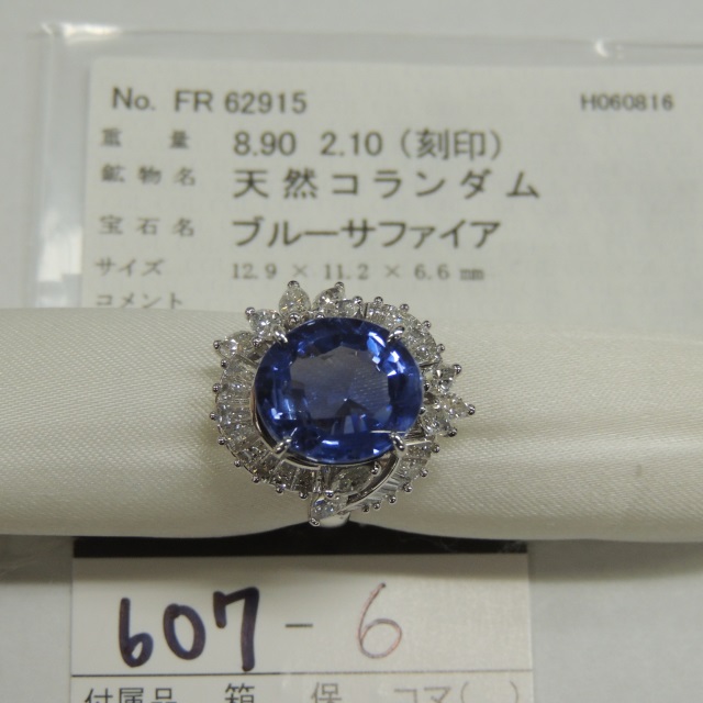 リング ブルーサファイア Pm900 12.00g 中ソ 石目:8.9 2.1