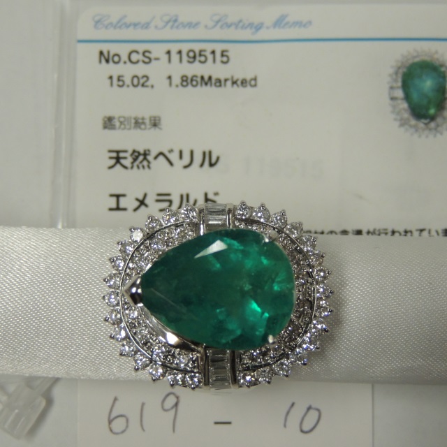 リング エメラルド ダイヤ Pt850 18.40g 石目:E12.15 D1.50