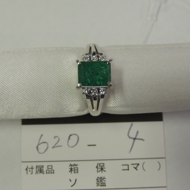 リング エメラルド ダイヤ PT900 6.90g 石目:1.06 D0.44