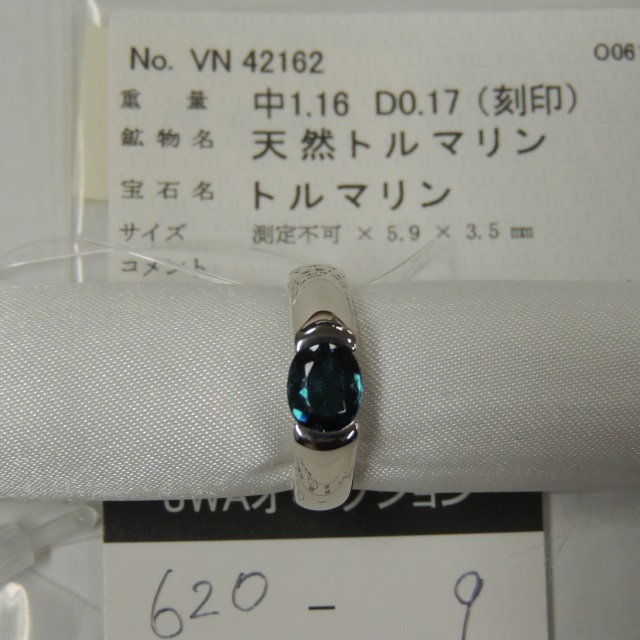 リング トルマリン ダイヤ PT900 11.10g 石目:1.16 0.17