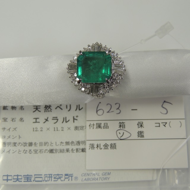 リング エメラルド ダイヤ PT900 12.00g 中ソ 石目:E5.460 D1.240