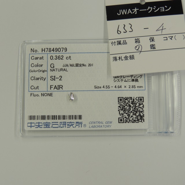 ルース ダイヤ G/SI2/FAIR 中ソ 石目:0.362