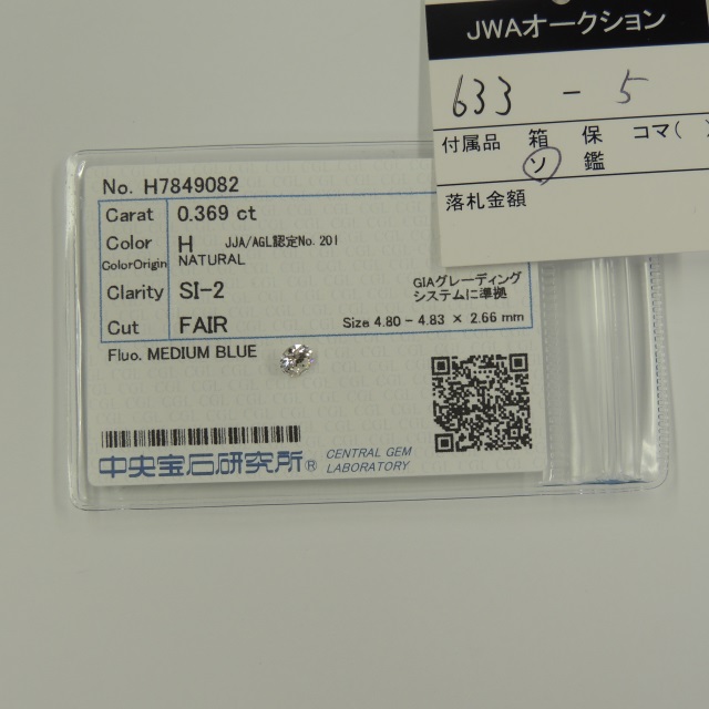 ルース ダイヤ H/SI2/FAIR/MB 中ソ 石目:0.369