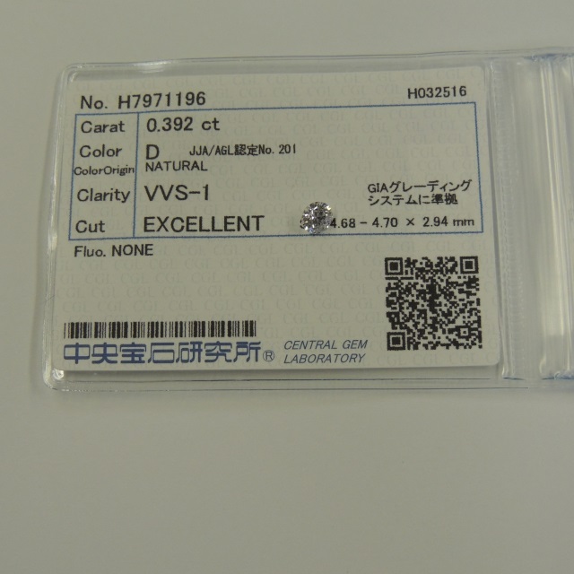 ルース ダイヤ D/VVS1/EX 中ソ 石目:0.392