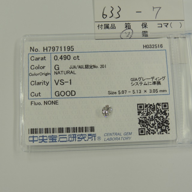 ルース ダイヤ G/VS1/GOOD 中ソ 石目:0.490