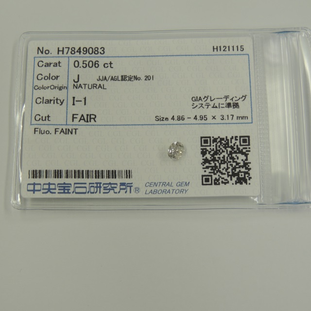 ルース ダイヤ J/I1/FAIR/FAINT 中ソ 石目:0.506