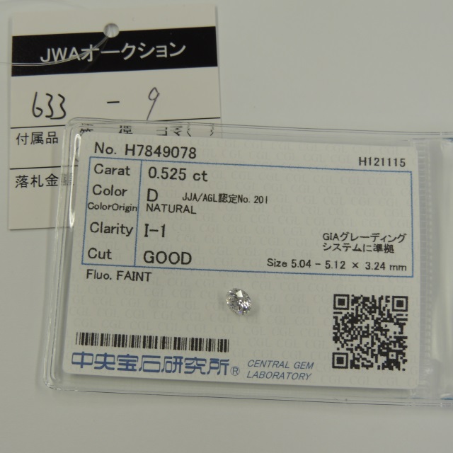 ルース ダイヤ D/I1/GOOD/FAINT 中ソ 石目:0.525