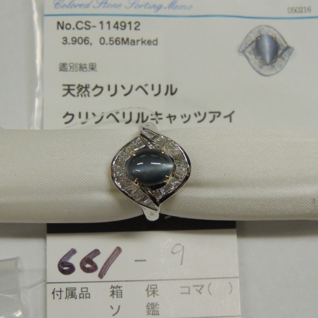 リング キャッツアイ Pt900/K18 8.00g 石目:CE3.906 FD0.56