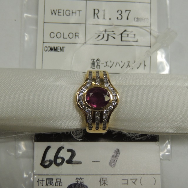 リング ルビー ダイヤ K18 7.20g ソ 石目:1.37 0.58