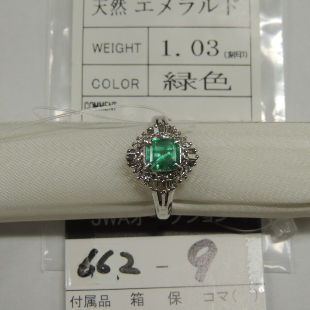 リング エメラルド ダイヤ Pt850 6.80g ソ 石目:1.03 0.48