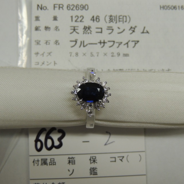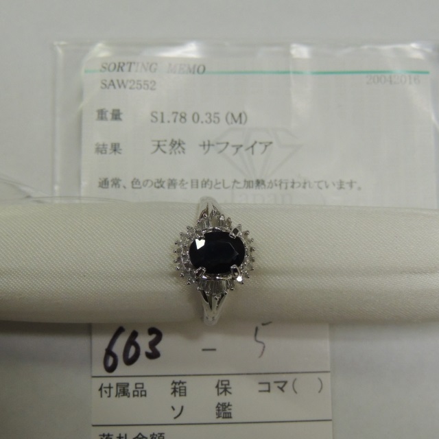 リング サファイア 石目なし 750 6.60g 23000