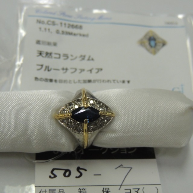 リング サファイア ダイヤ K18/Pt850 7.90g GRJソ 石目:S1.11 D0.33