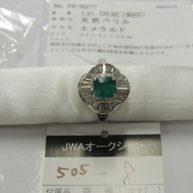 リング エメラルド ダイヤ Pt900 10.20g 中ソ 石目:E1.31 D0.92