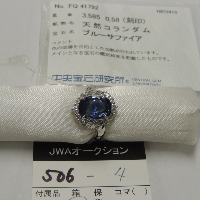 リング サファイア Pt900 6.10g 中ソ 石目:3.585 0.58