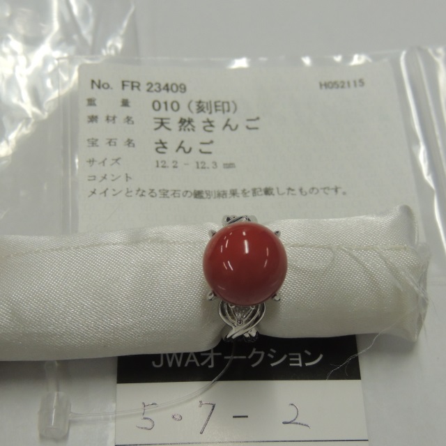 リング サンゴ Pt900 8.60g 中ソ 石目:5.97