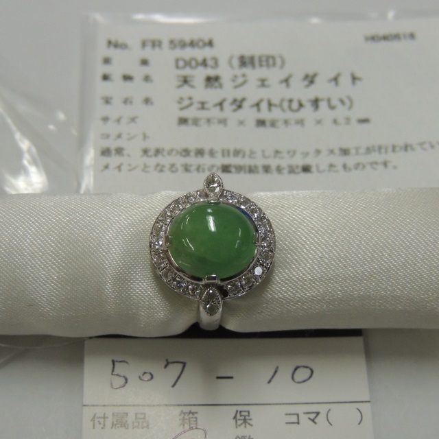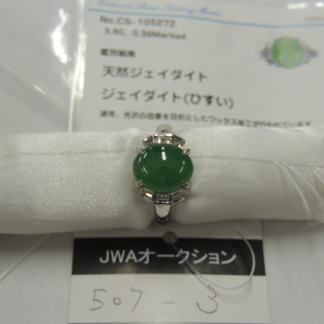 リング ヒスイ ダイヤ Pt900 9.00g GRJソ 石目:J3.80 D0.39