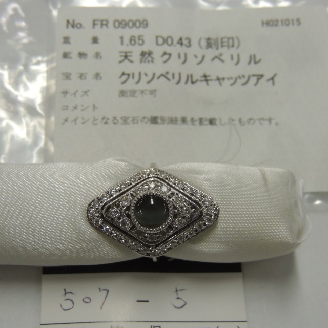 リング キャッツアイ ダイヤ Pt900 8.40g 中ソ 石目:C1.65 D0.43