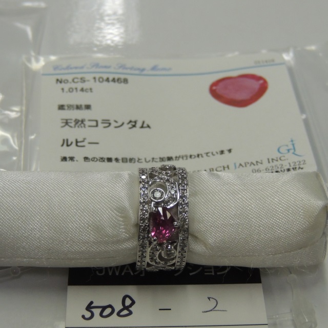 リング 非加熱ルビー Pt900 6.40g GRJ鑑 石目:2.034 0.97