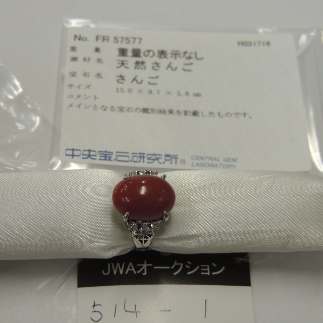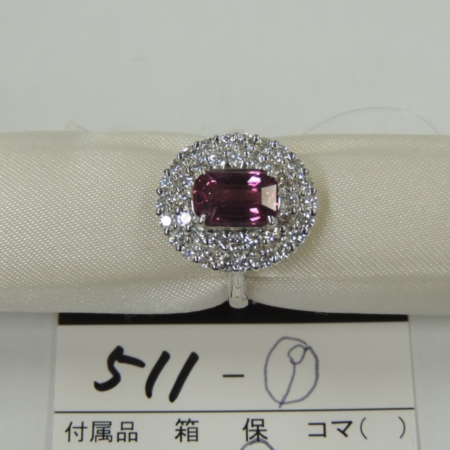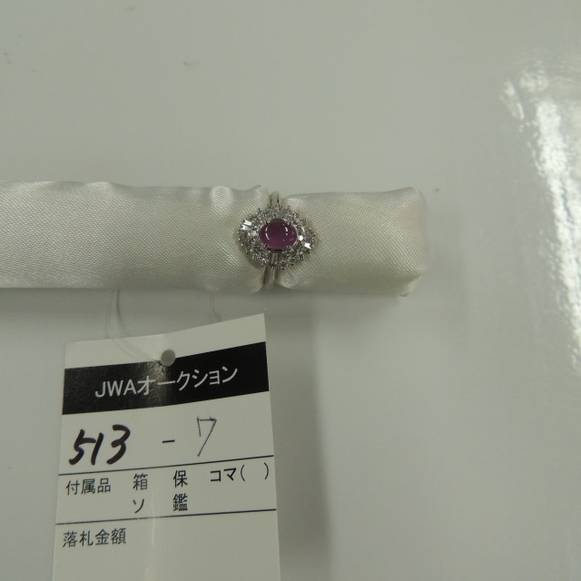 リング 非加熱ルビー ダイヤ Pt900 7.45g 中鑑 石目:2.019 0.86