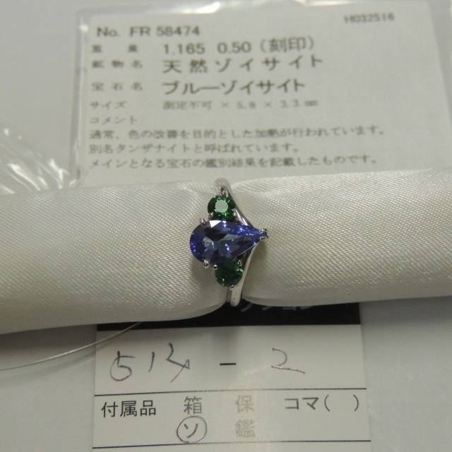 リング タンザナイト ガーネット Pt900 5.50g 中ソ 石目:T1.165 G0.50