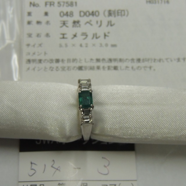 リング エメラルド ダイヤ Pt900 5.00g 中ソ 石目:E0.48 D0.40